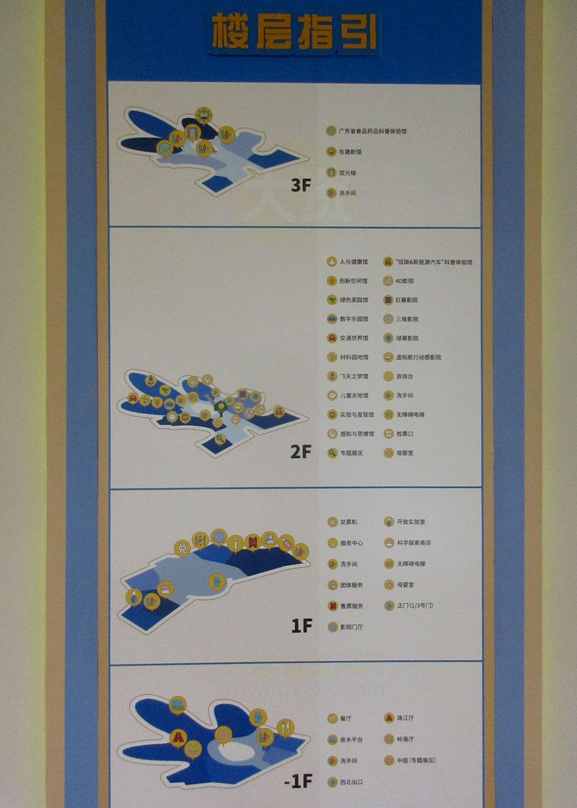 | 科学中心一楼&科学之眼大厅以北 游客休息区西侧墙面最近新装饰了关于科学中心的各个展馆讯息、以及各种科普相关活动展示、还有服务内容的介绍提示 | ||||||