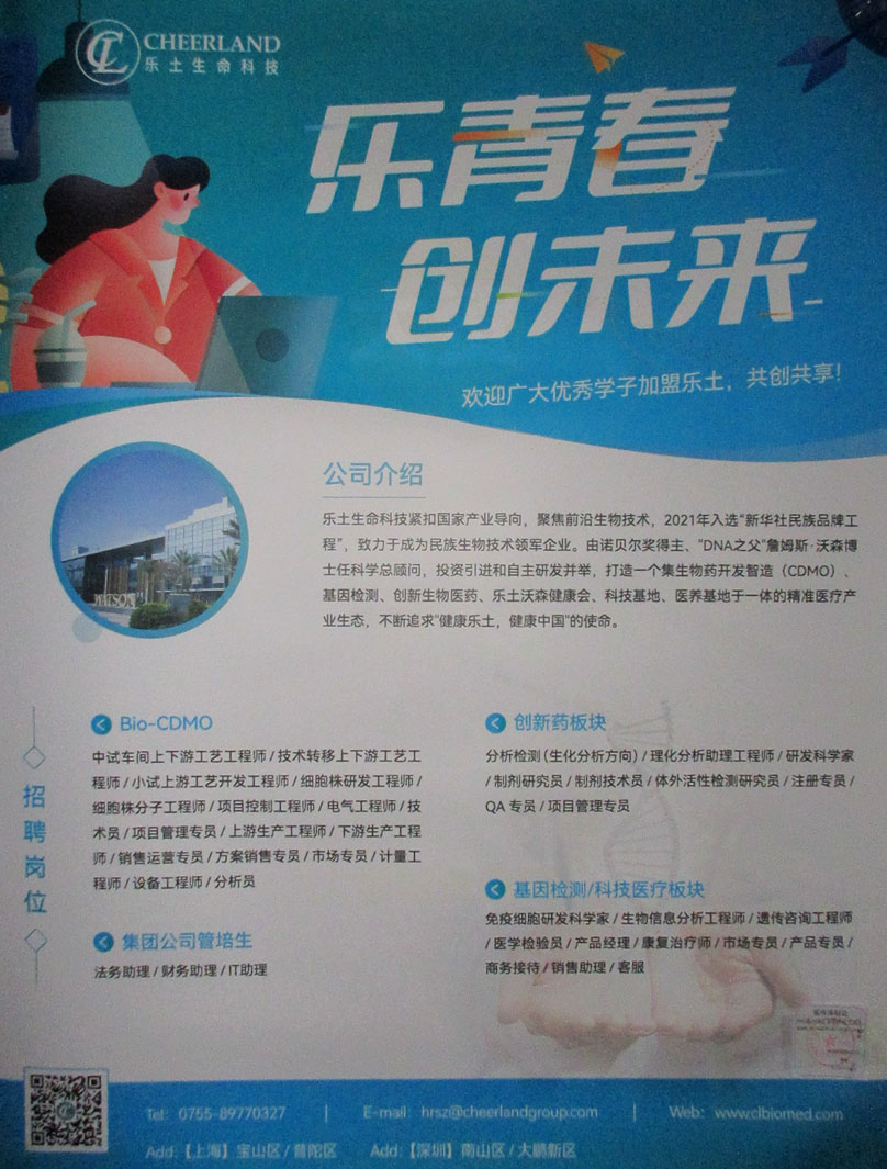乐土生命科技2023校园招聘宣讲会 10月16日下午16点-18点 教学区A2-324 |