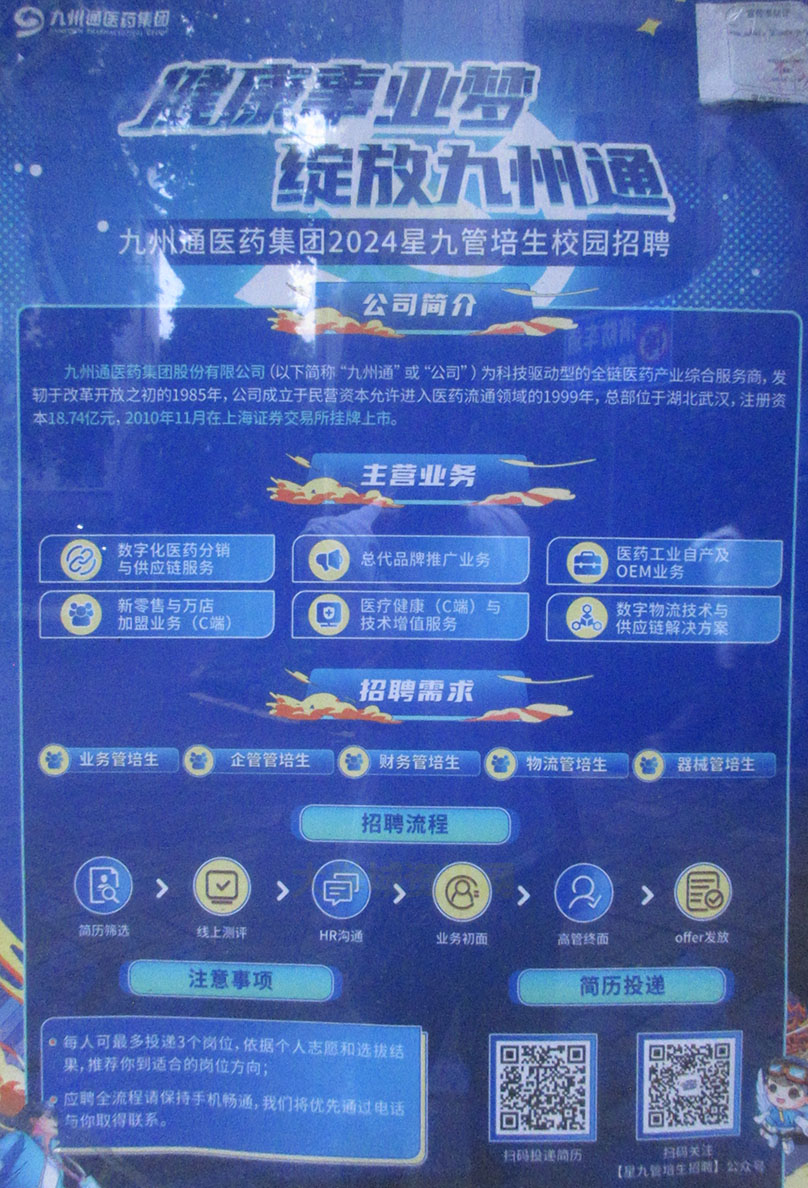 | 广药-九州通医药集团2024星九管培生校园招聘 扫码投递简历 | ||||||