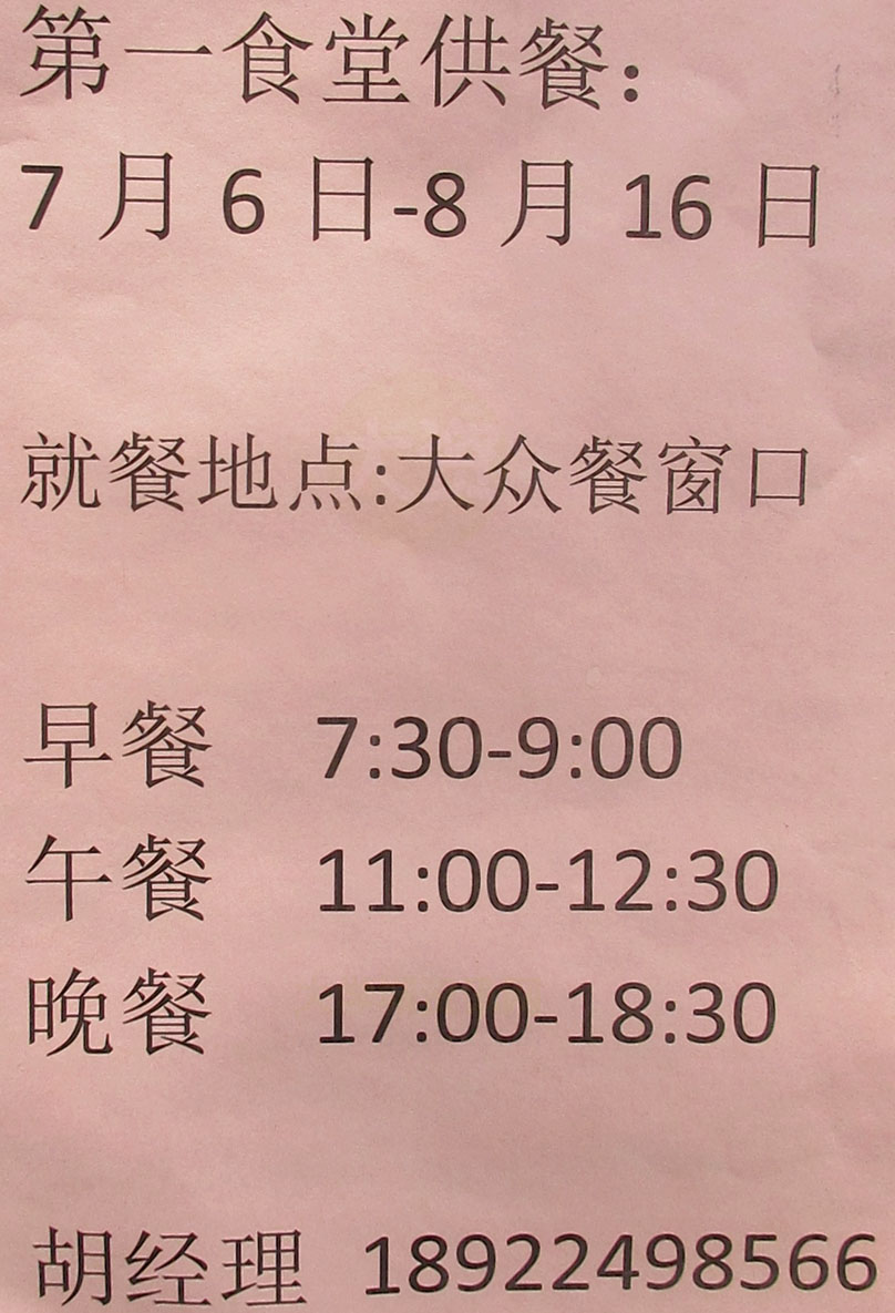 | 广药放假了,生活区两个饭堂,只有一饭一楼的大众窗口有供餐 日期时段是7月6日-8月16日 早午晚餐各1个半钟头 | ||||||