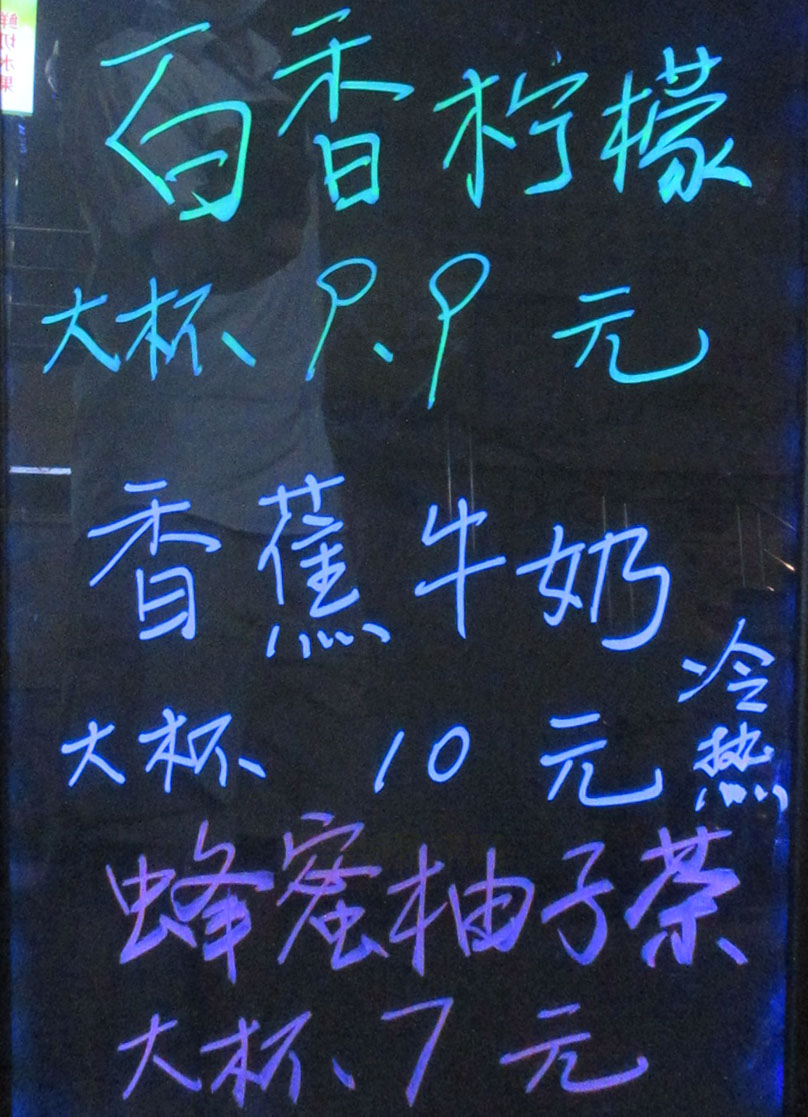 百香柠檬大杯9.9元 香蕉牛奶大杯10元(冷/热) 蜂蜜柚子茶大杯7元 |