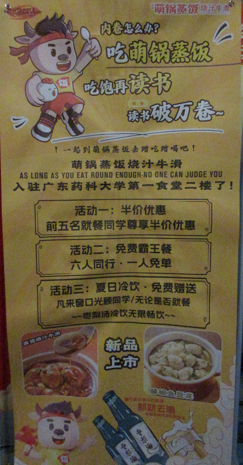 | 广药一饭二楼最近新开了家叫萌锅蒸饭烧汁牛滑的 开业期间,好像有半价优惠、免费餐、免费赠饮等 新品推荐-麻婆烧汁牛滑,藤椒鱼豆花 | ||||||