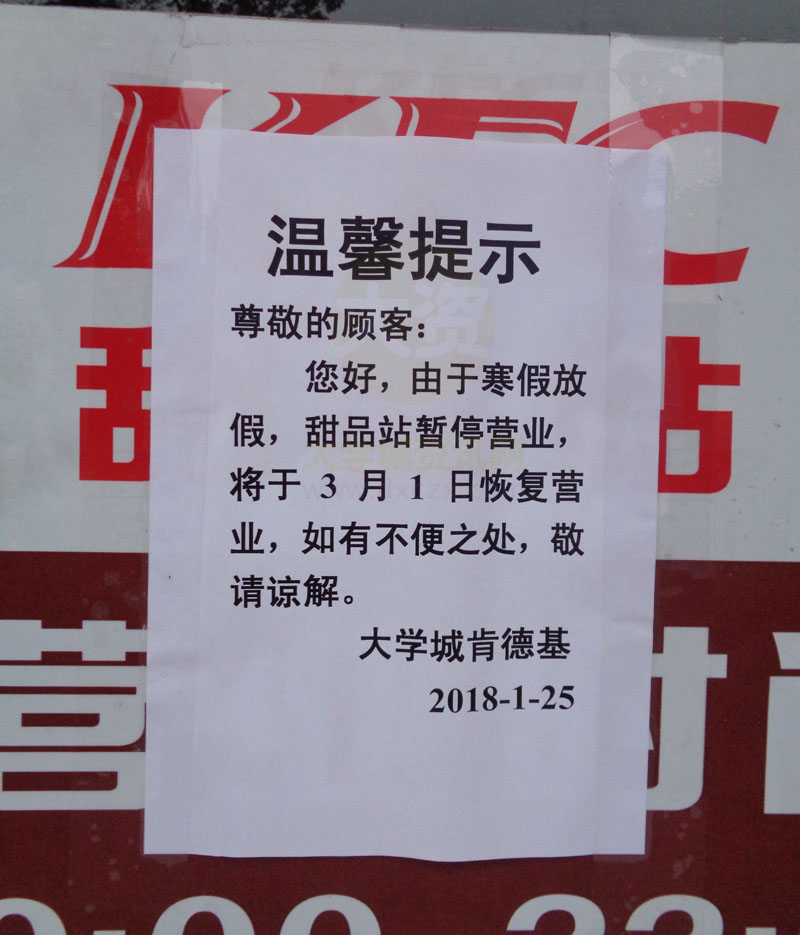| 肯德基甜品站寒假期间暂停营业 3月1日恢复 | ||||||