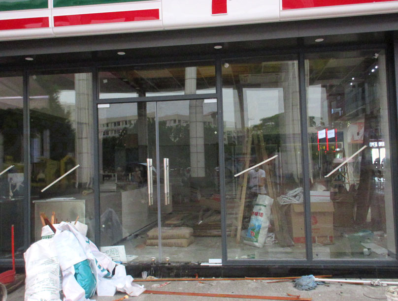 广大商中A区中横座东北角新装711便利店外观门面好像已经弄好并拆围挡了,内部还有些粉刷和地板等的似还待完成,看样子要不了多久就可以铺货营业了