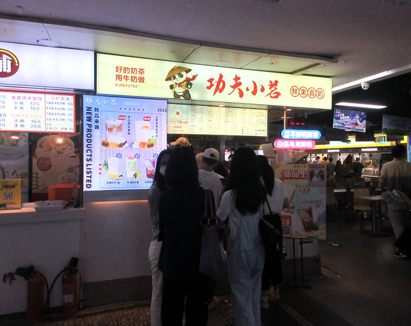 C区美食中心正门入口直对 功夫小茗 新品来袭 木瓜厚乳拿铁 山茶花木瓜牛奶 生椰好忙 牛油果甘露 利宾纳柠檬茶
