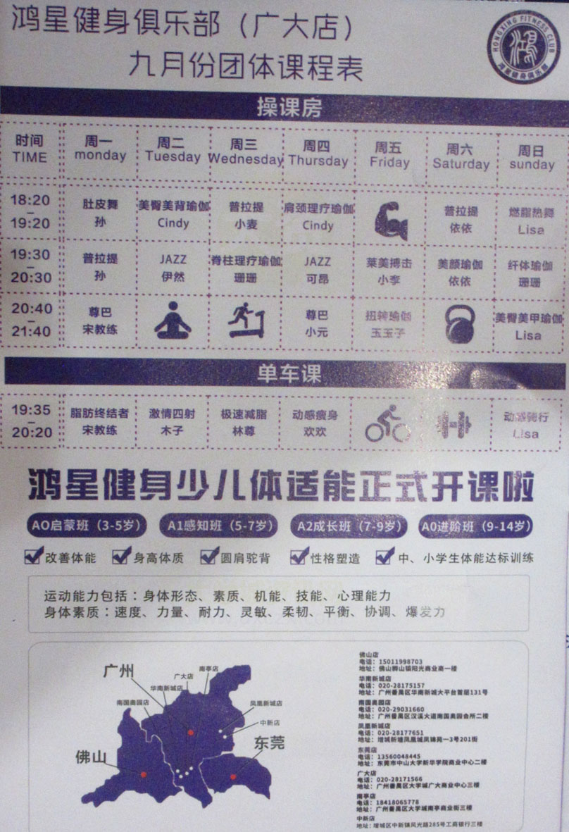 鸿星健身俱乐部 百人团购·极限优惠,名额有限 九月份团课表 少儿体适能开课