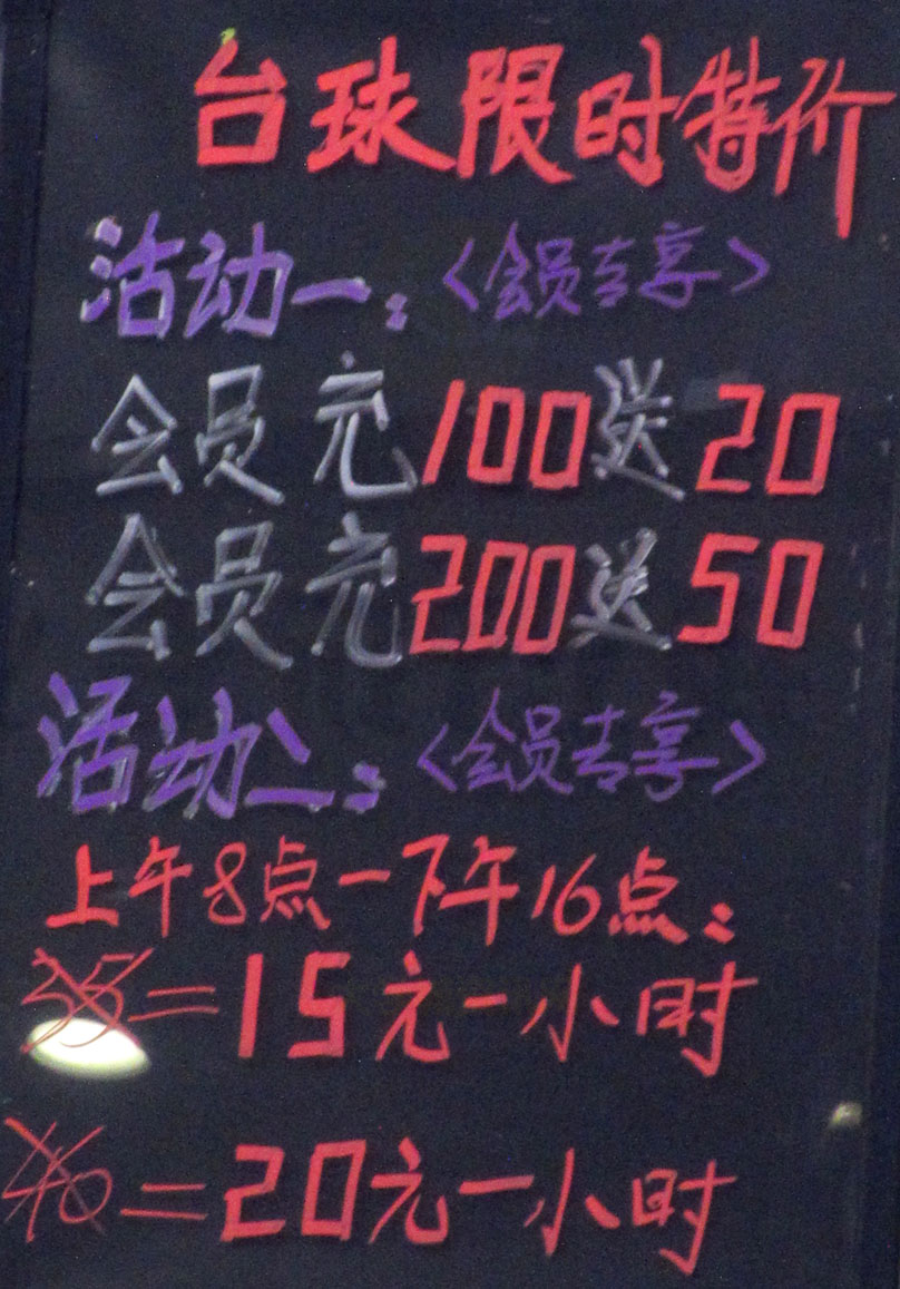 广大商中D区东北角楼梯&电梯上三楼 引擎电竞台球俱乐部 台球限时特价 会员专享 充100送20,充200送50 早8点-午16点,35元桌仅15元1小时,40元桌仅20元1小时