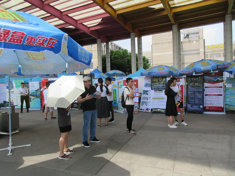 天气酷热、阳光大晒,还是有不少求职实习意向生到场,或咨询、或看看了解、或递交简历面试