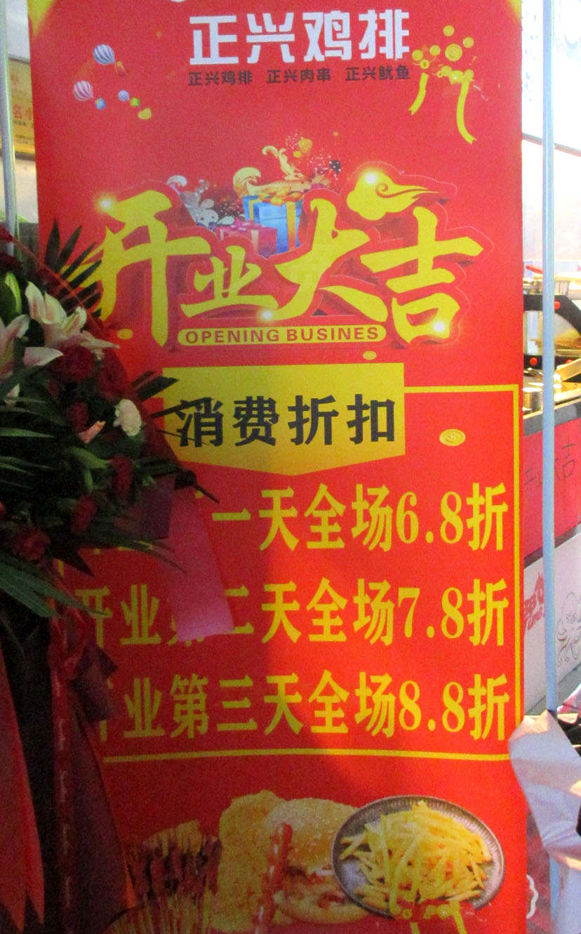 美食中心南门廊道外新开一家正兴鸡排店,前三天均有打折优惠,今天是第二天了,近饭点时间,看到不少军训服新生光顾