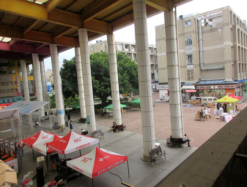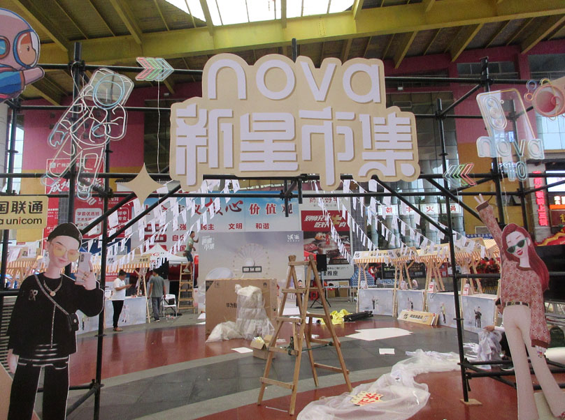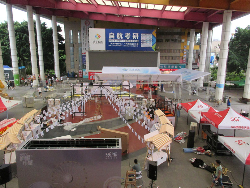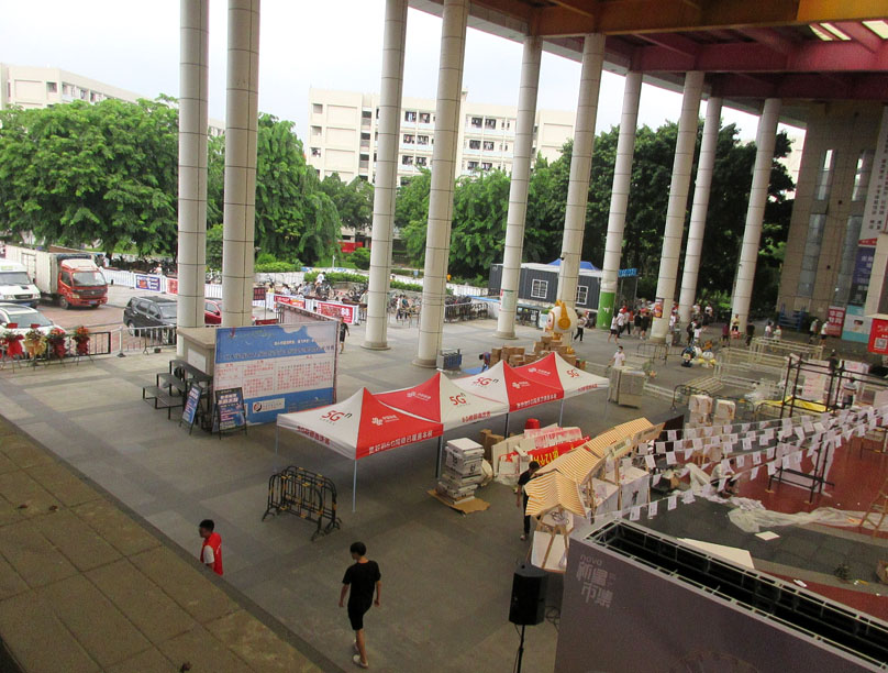 广大明天起新生来校报到,商中下午就看到一些商家&品牌在布场准备明后天等的宣传促销活动了,中庭广场内则主要是中国移动和联通&华为的两大运营商的展位和游戏互动等