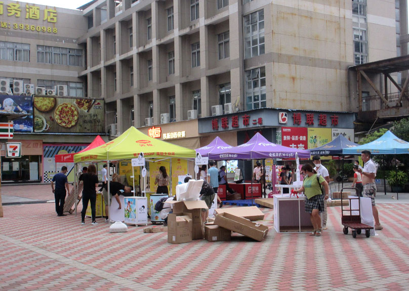 | 广大明天起新生来校报到,商中下午就看到一些商家&品牌在布场准备明后天等的宣传促销活动了 | ||||||