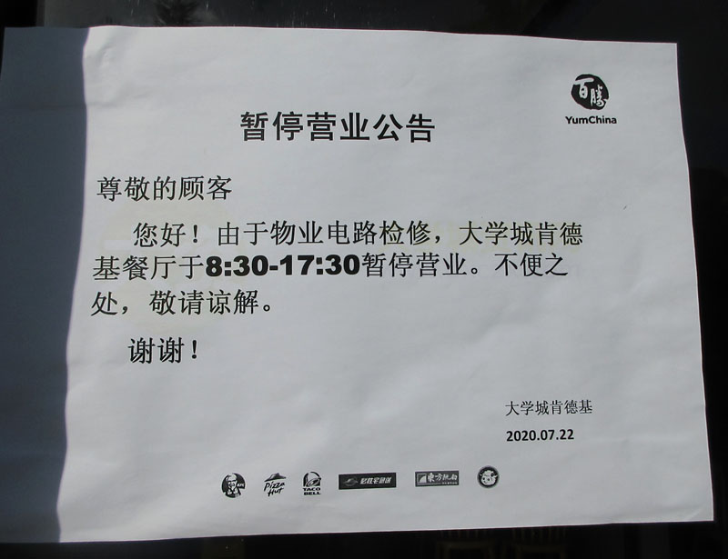 | 商中肯德基因电路常规检修保养 8点半至17点30分暂停营业 | ||||||