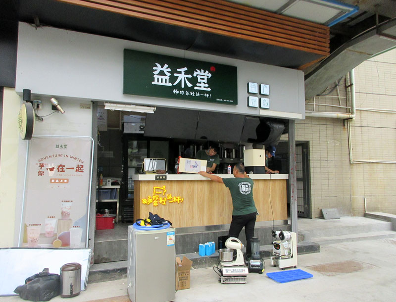 美食中心西外侧南端当头铺-益禾堂也已经在清洁整理了,看样子差不多要开了吧 真的是数数随便哪一家店重开,那之前都是隔了整整200天多左右的没开啊 店员说先清洁下搞搞卫生晒一晒 9月1号才正式重开营业