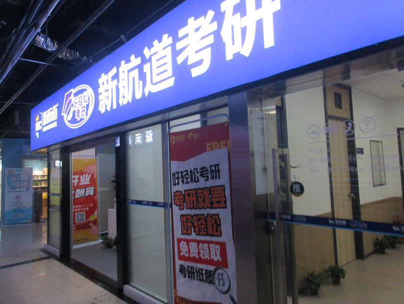 早前看到的D区二楼中南的新航道考研 最近已经有在开门营业了 门面外观招牌还挺醒目的