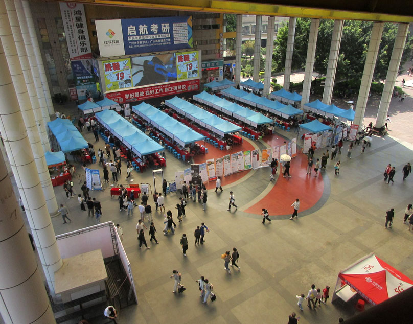 | 广大商中中庭广场上午开始的招聘会 目前已经进行到中午 现场见到似乎应聘者不算多 广大也是昨天才开始第一批学生返校 | ||||||