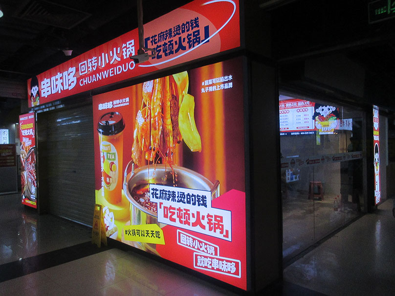 广大商中D区一楼中 原宝岛眼镜店没开一段时候后 现在最新看到似乎正在新装一家叫串味哆的回转小火锅 目前看仍在装修待完善中 应该不久将开试营业
