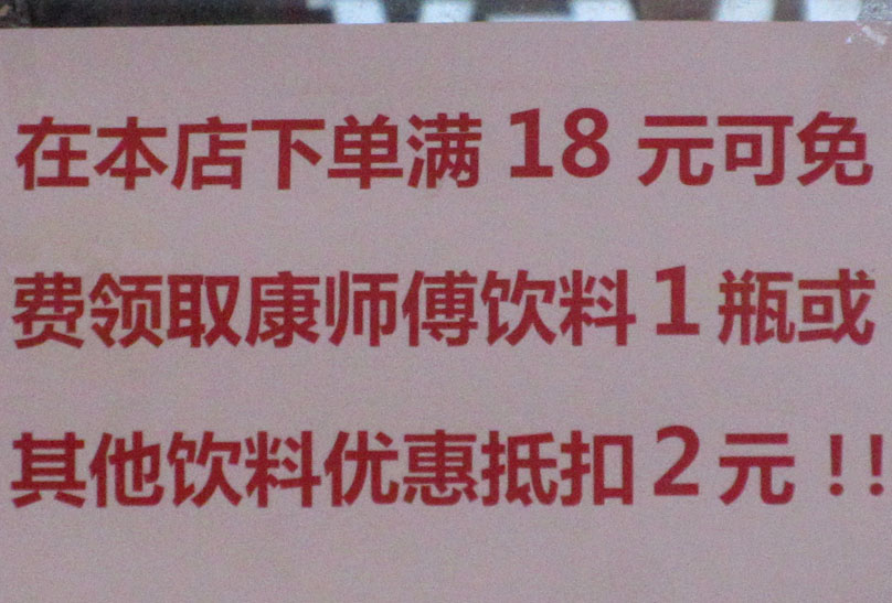 | 广大商中A区中横座南列中 杨国福麻辣烫 下单满18元可免费领取康师傅饮料1瓶或其它饮料优惠抵扣2元 | ||||||
