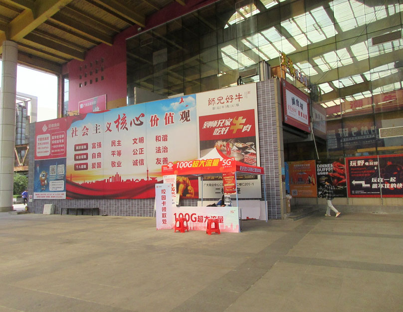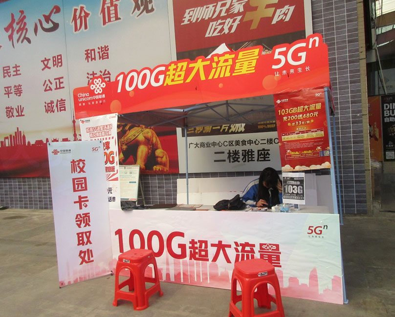 商中中庭广场 联通流量套餐推广摊位 校园卡领取处 100G超大流量 充200送480元 仅33元每月