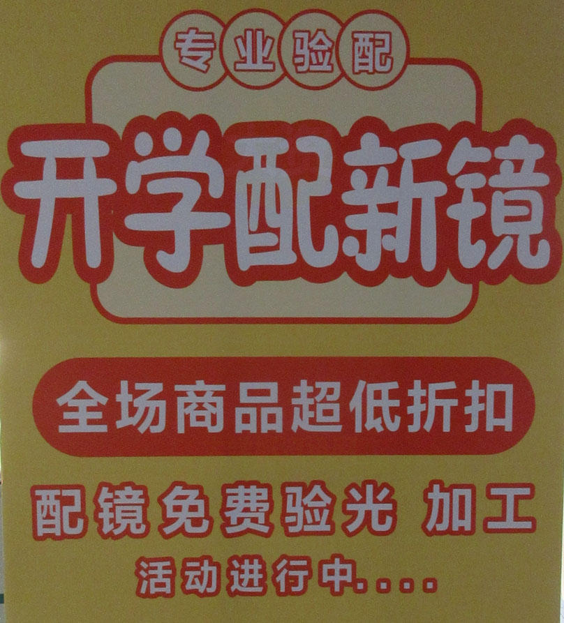 | 广大商中D区一楼西廊道北 宝榕眼镜 开学配新镜 全场商品超低折扣 配镜免费验光/加工 活动进行中 | ||||||