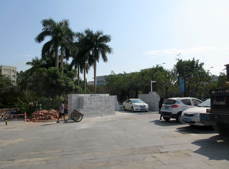 装修的建材要从这边近中环机动车出入口旁,手推车一车一车运到楼梯口,毕竟D区南头行车不便,大车不好开近