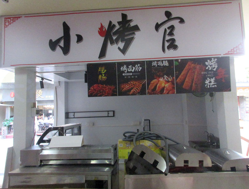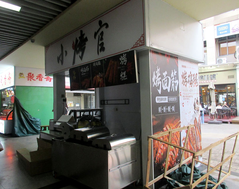 商中A区西门直廊道中-原丝袜奶茶铺位已看到新装的小吃店叫小烤官