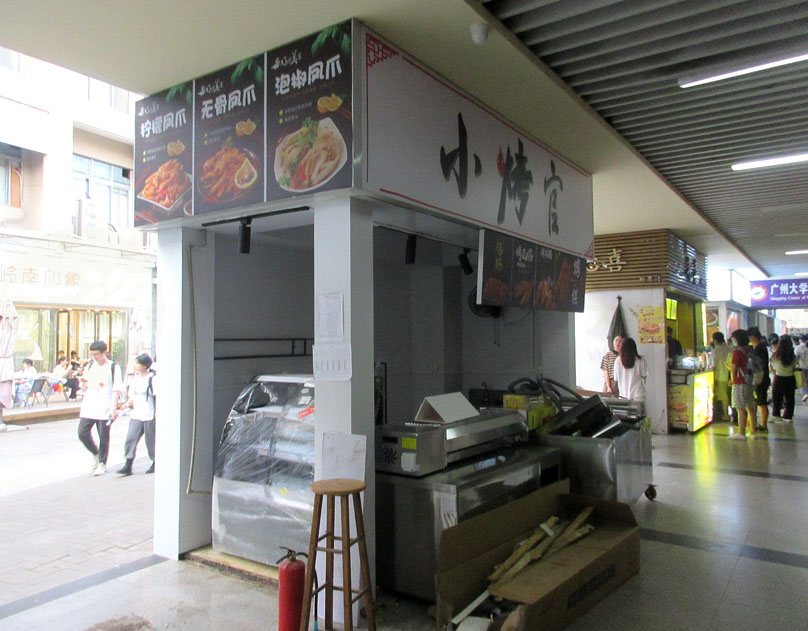 | 商中A区西门直廊道中-原丝袜奶茶铺位已看到新装的小吃店叫小烤官 | ||||||