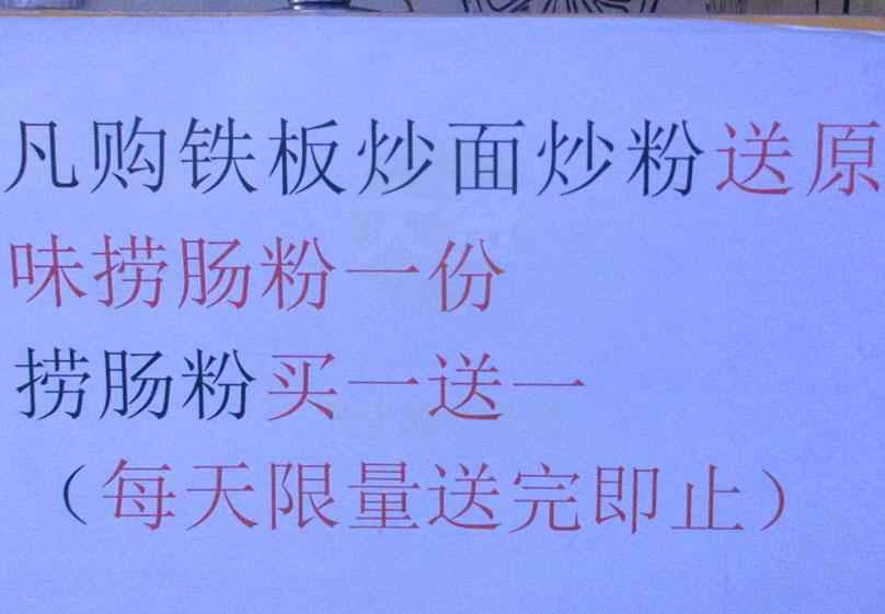 | 商中D区北列外廊道 滋味E屋 凡购铁板炒面炒粉送原味捞肠粉一份 捞肠粉(每天限量)买一送一 | ||||||