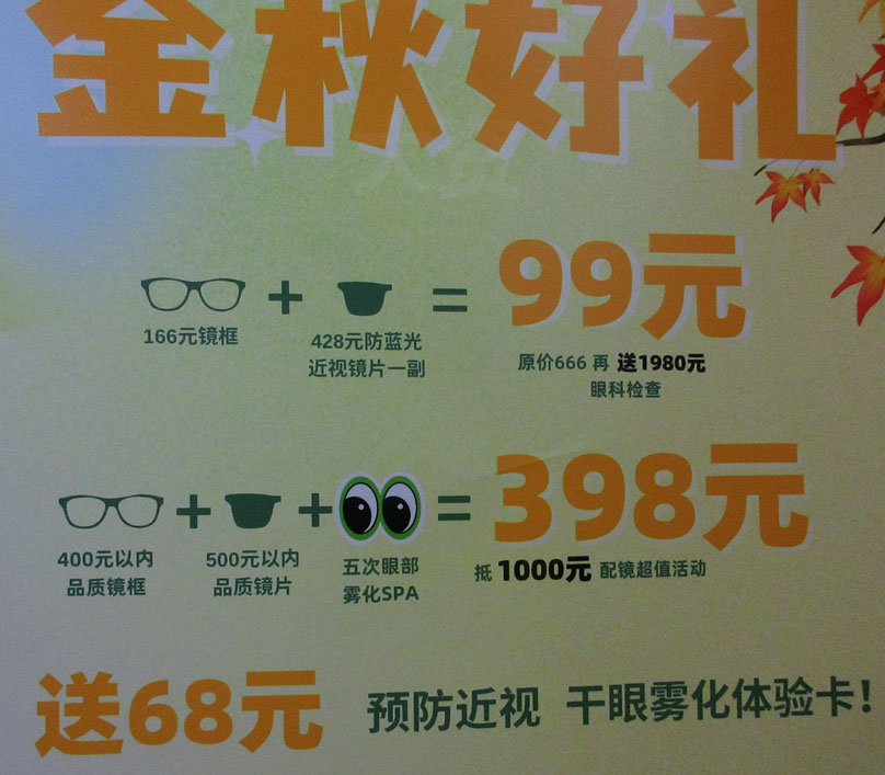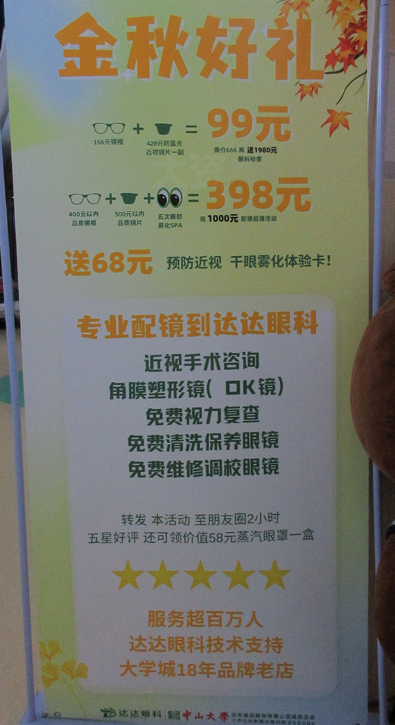 | 广大商中D区二楼西廊道中南 达达眼科 金秋好礼 | ||||||