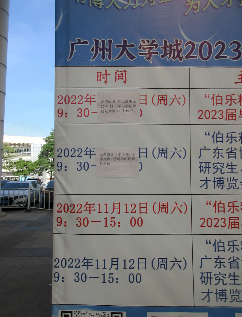 广大商业中心中庭广场,周六昨天没按期进行的招聘会,说延期到11月19日举行