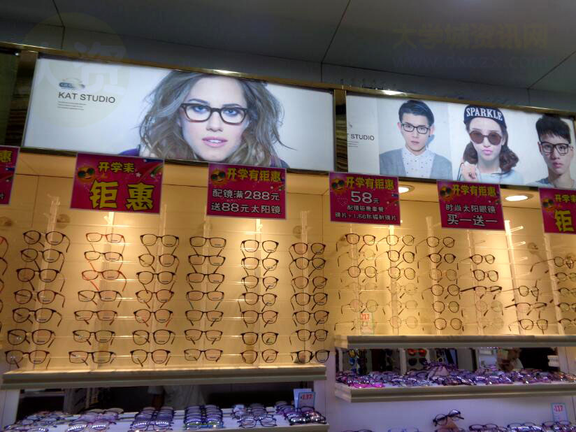 | D区一楼西廊道南可光眼镜开学来钜惠:配镜满288元送88元太阳镜 58元配镜钜惠套餐镜片+1.56防 | ||||||