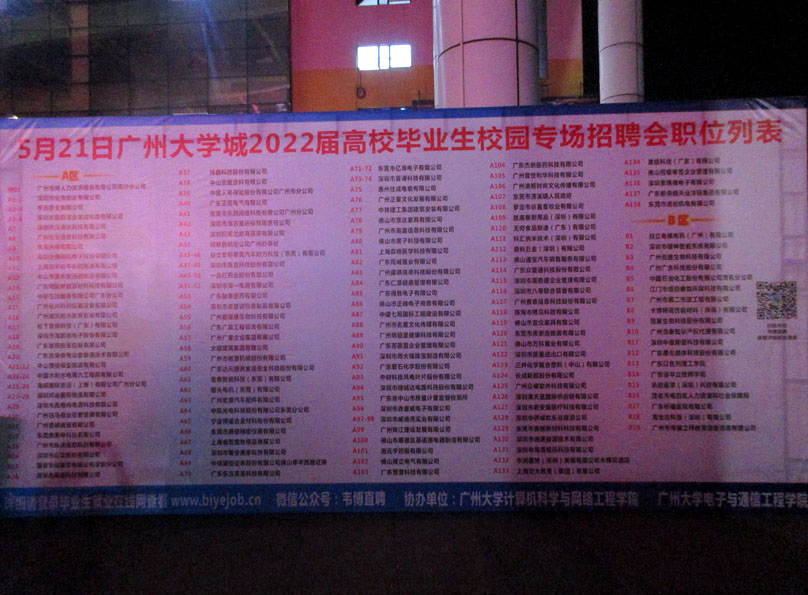 | 5月21日广州大学城2022届高校毕业生校园专场招聘会预告 上午9点至下午3点 广州大学商业中心中庭广场 | ||||||