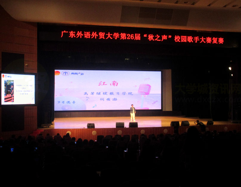 | 广外2023秋之声全校复赛 今晚在大学城校区大会堂展开进行 每个学院各派出一名歌手参赛 竞唱完毕 从23名选手中决出16强 将参与角逐最终的广外秋之声2023总决赛 | ||||||