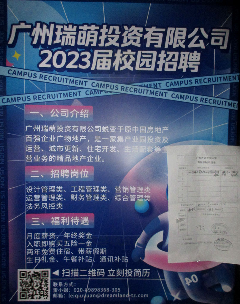| 广州瑞萌投资有限公司2023届校园招聘 招聘设计、工程、营销、运营、财务、综合管理类等 扫码投简历 | ||||||