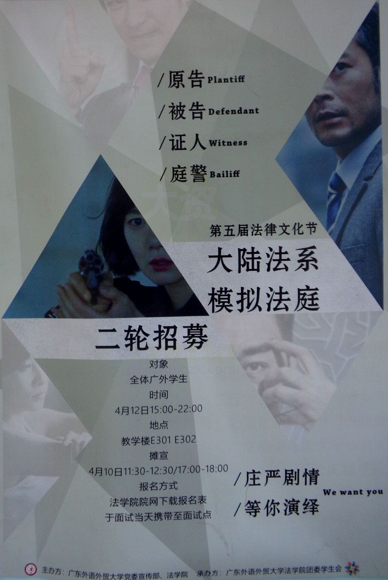 | 第五届法律文化节大陆法系模拟法庭演员招募 | ||||||