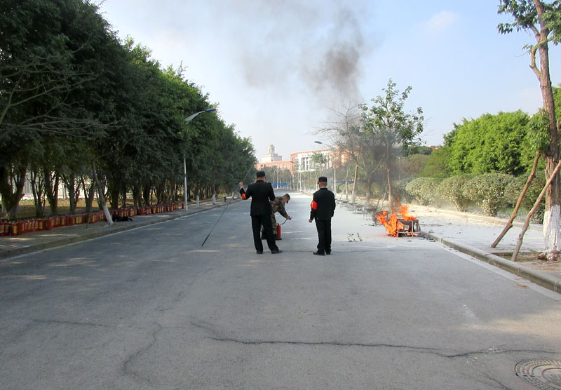 | 今天元旦并没放假休息新生军训还是照常进行,期间还进行了消防灭火演练 | ||||||