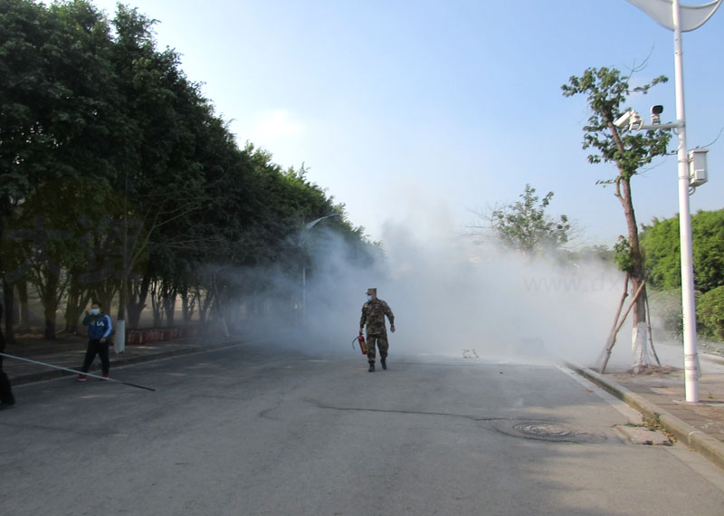 这灭火器喷出的粉末,不仅把地面给刷白了