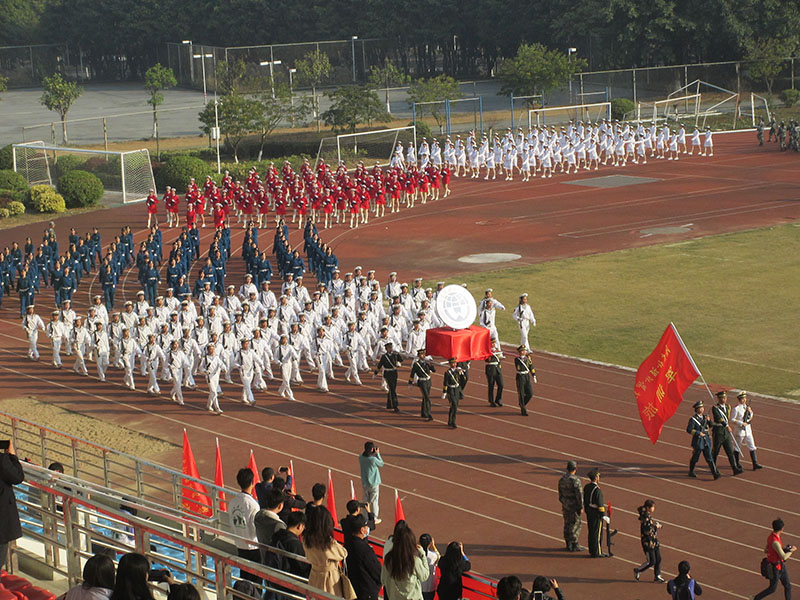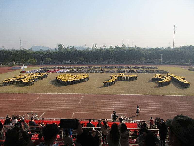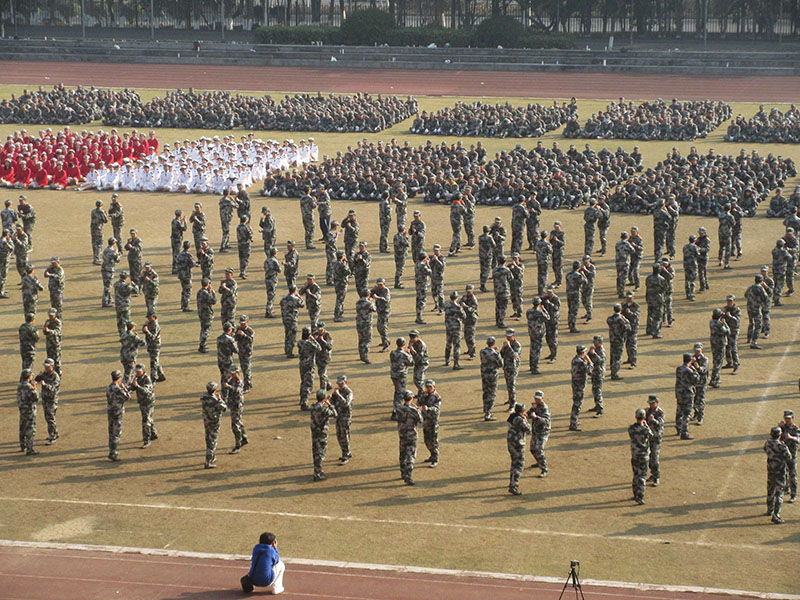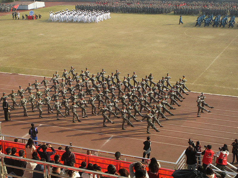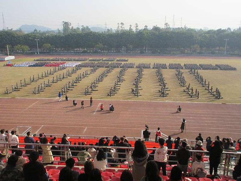 20级本科新生军训检阅大会今上午在体育场进行