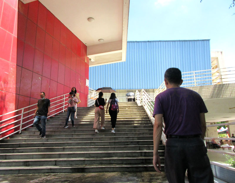 金融学院的报到点设在多功能活动厅 空间又大、空调又明显 让人感到舒适