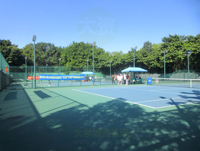 广工网球场上午看到 有个开源杯中国高校广东校友网球联赛进行 大学城华师网球场说也有比赛
