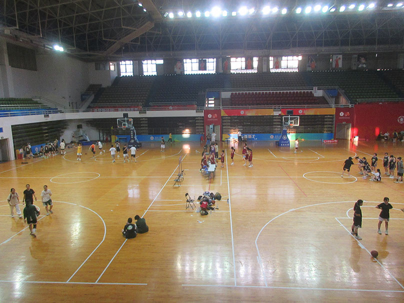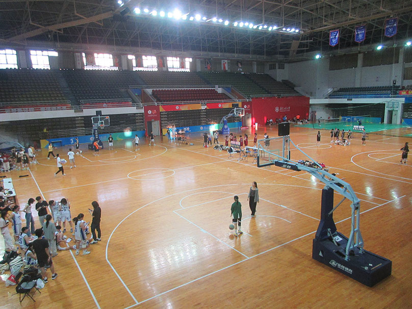 广东工业大学体育馆内 今天下午 看到 似乎 还继续有女子篮球赛在进行喔