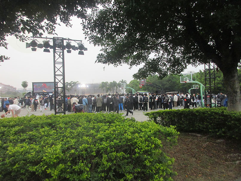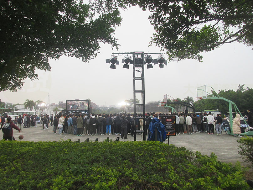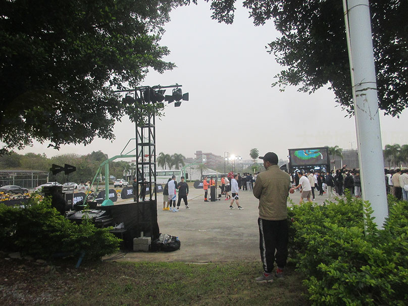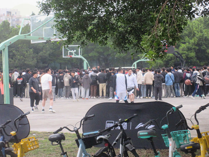 才刚开学,这么快,广工体育区西侧,就有个得物&李宁赞助的线下户外篮球挑战赛,附带一些游戏互动与花活表演等 天气也还算有些小冷 依然吸引了一些篮球爱好者驻足围观