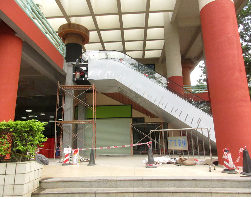 东区一饭西南角上二楼电动扶梯已在进一步装修和完善施工作业了 看着也是临可使用前的最后阶段了