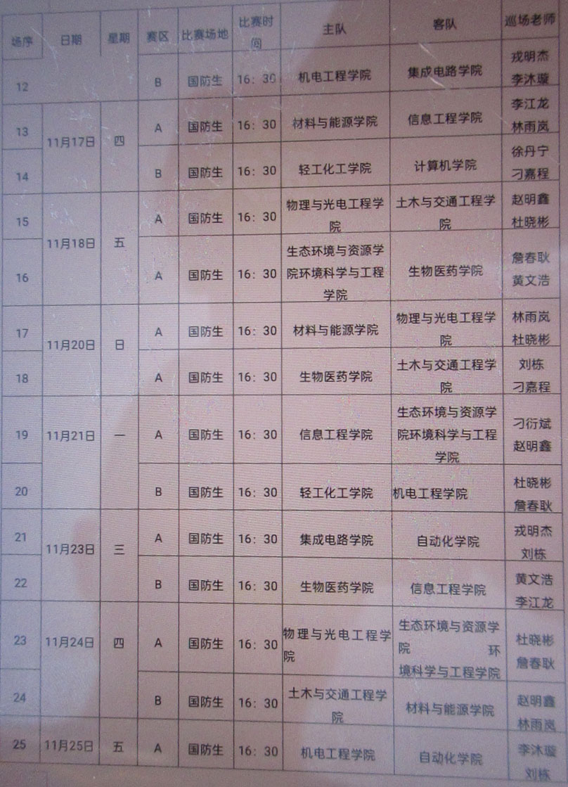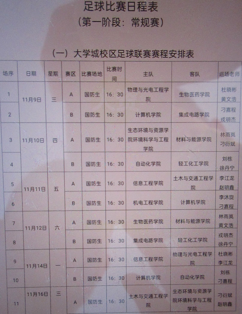 第七届广东工业大学足球联赛大学城校区首阶段常规赛赛程安排