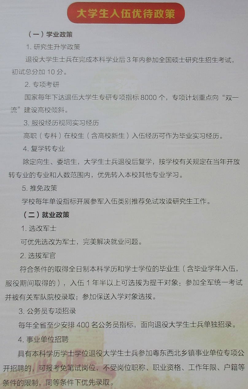 | 2023年大学生应征入伍条件、工作安排及相关政策 | ||||||