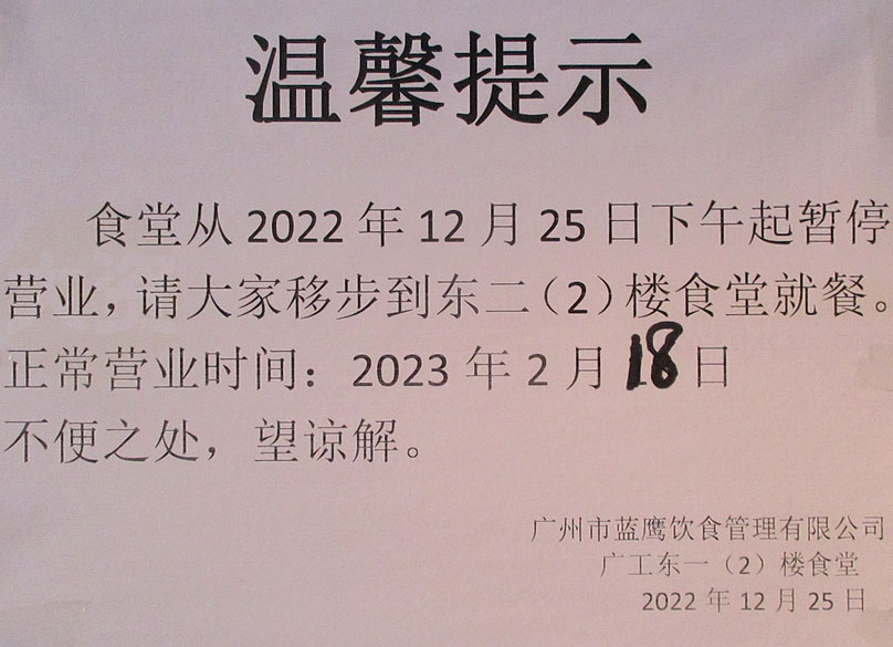 东区一饭二楼从12月25日下午开始放假,至明年2月17日,2月18日恢复营业