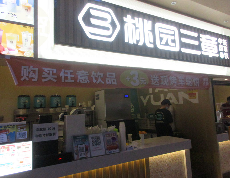 西区三饭二楼桃园三章 购买任意饮品+3元送现烤车轮饼 |