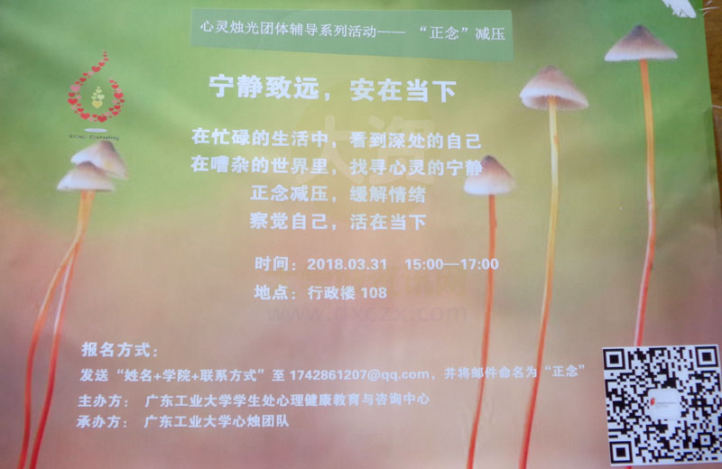 | 心灵烛光团队辅导系列活动――“正念”减压 03.31 15:00-17:00 行政楼108 | ||||||