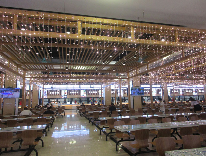 二饭一楼看着也是一样跟往常无异啊,就是人少了点,还是一样地“灯火通明、辉煌靓丽”,空调依然感人,两侧边附着开的一些店也有在营业 |