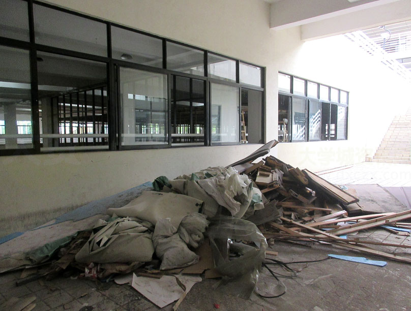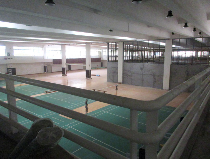 | 体育馆东侧,羽毛球场南区木质地板场也又在似进行施工改造建设装修 | ||||||