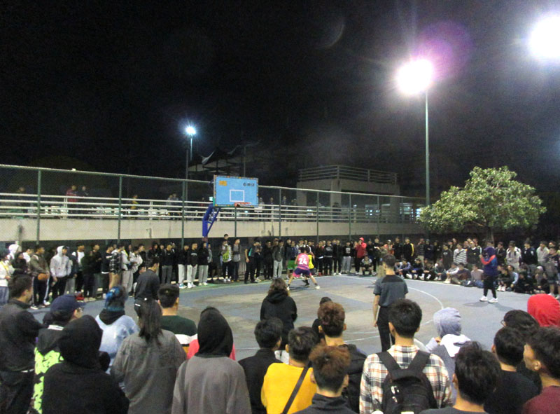 下午4点开始,4V4/3V3/1V1,杀到晚上1V1单挑还在进行中。夜晚,冷空气增强,但广工学子的篮球热情,就这点冷,还是围得满满半场四周,不时发出阵阵喝彩欢呼声or起哄嘘哇声